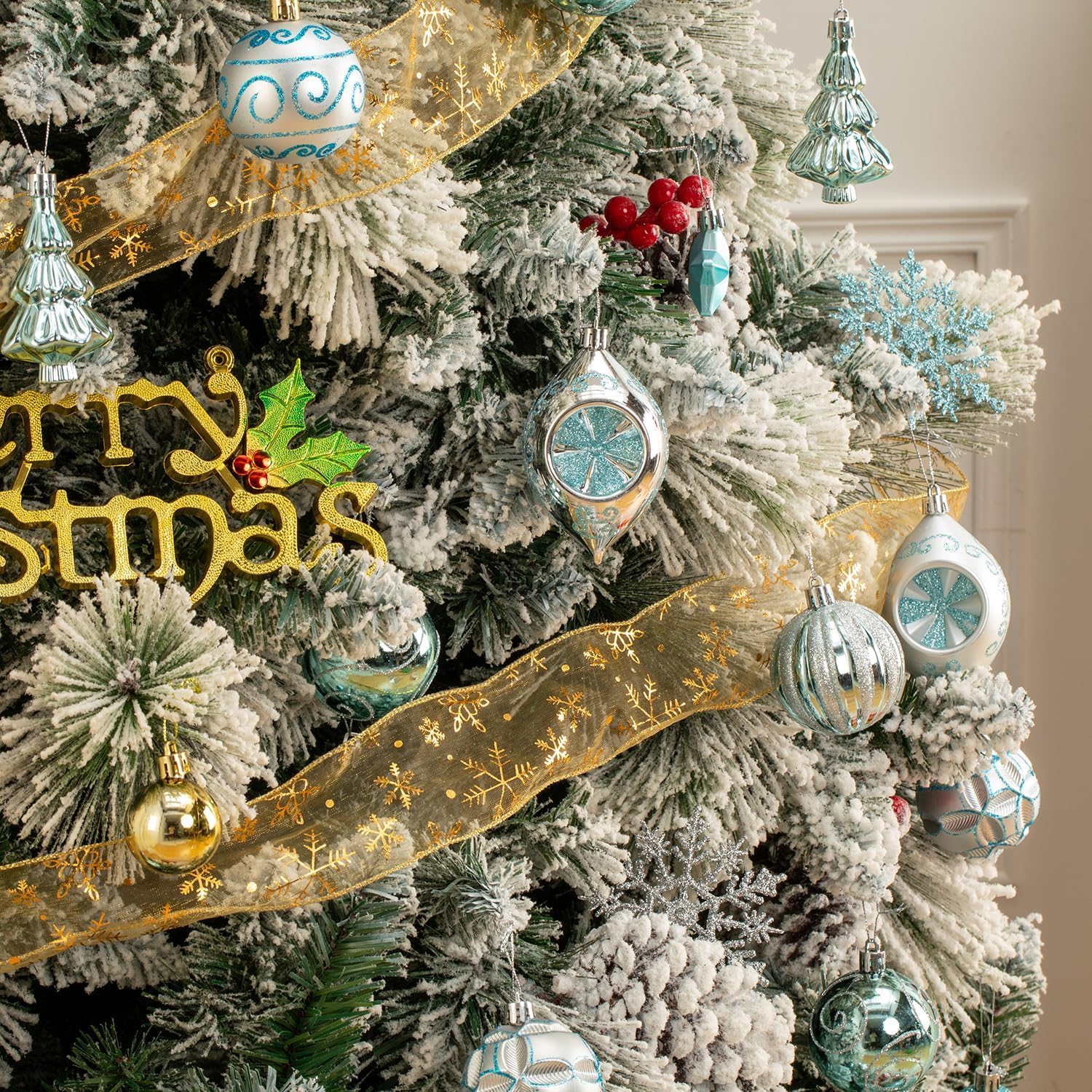 114 Pcs Blue and Silver Christmas Ball Ornaments Set, Xmas Tree Ornament Bulk Decoration, Shatterproof Decorative Hanging Baubles for Party Holiday Wreath Garland Home Decor