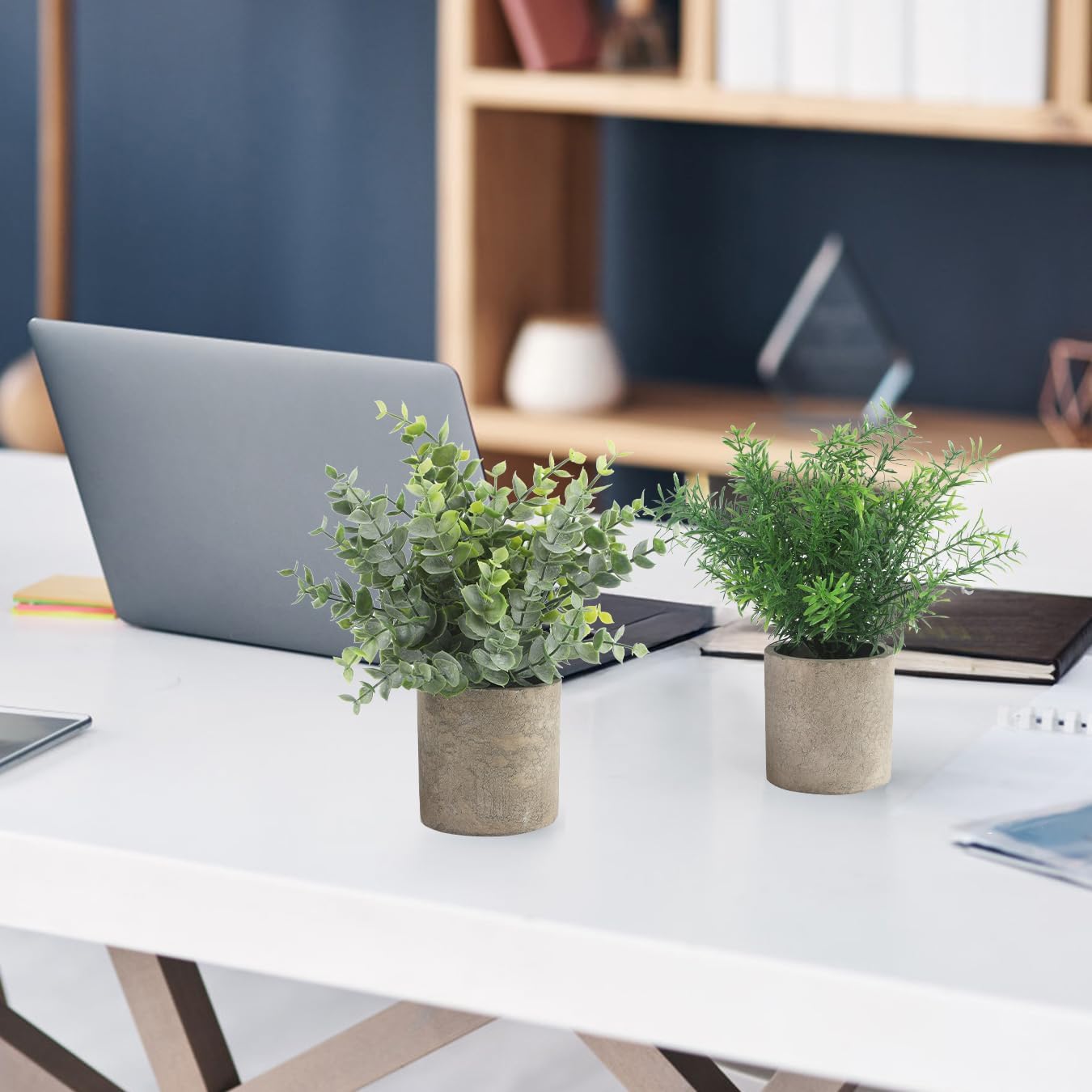 ALAGIRLS 4 Packs Fake Plants Small Artificial Plants Indoor Eucalyptus Rosemary Succulents Plants Potted Faux Plants for Home Indoor Office Bathroom Living Room Decor