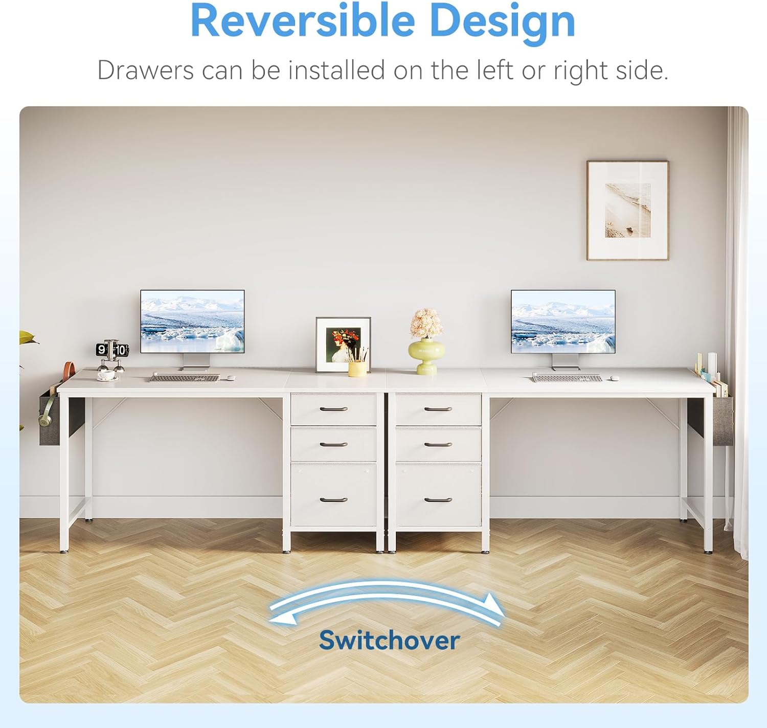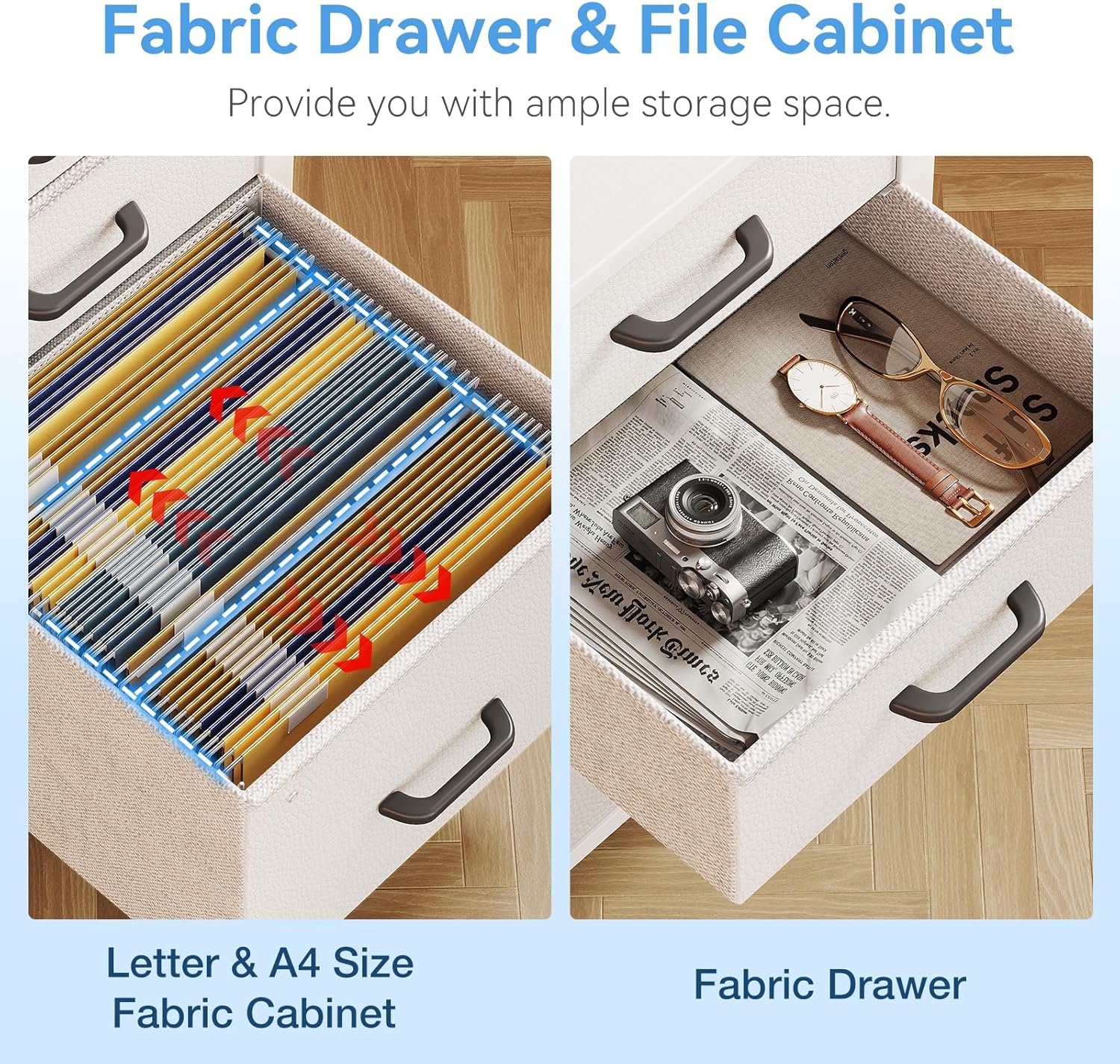 Casaottima 40" Small Computer Home Office Desk for Bedroom with Fabric Drawers & File Cabinet, Cloth Storage Bag and Hook, Writing Study Work Table for Small Space, White