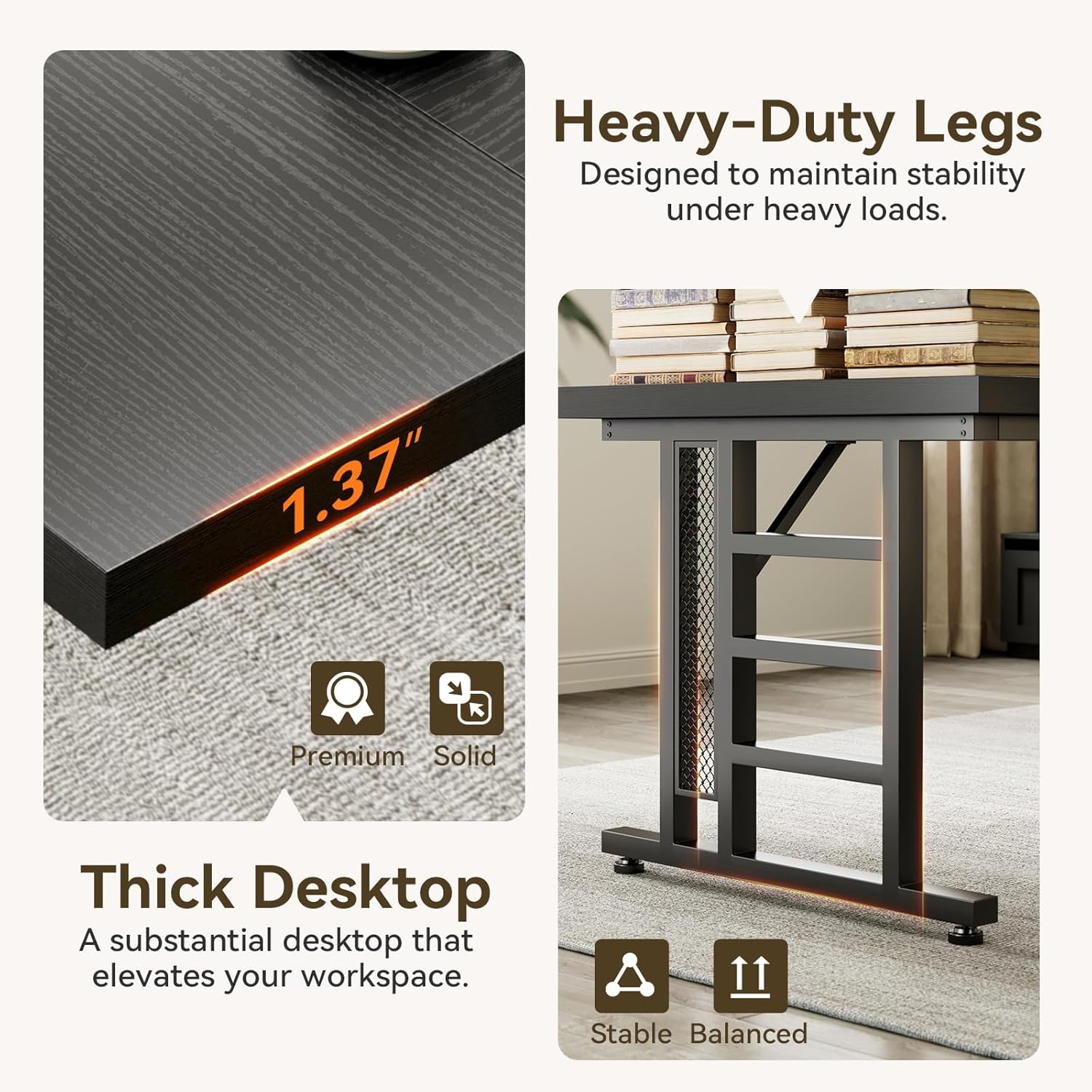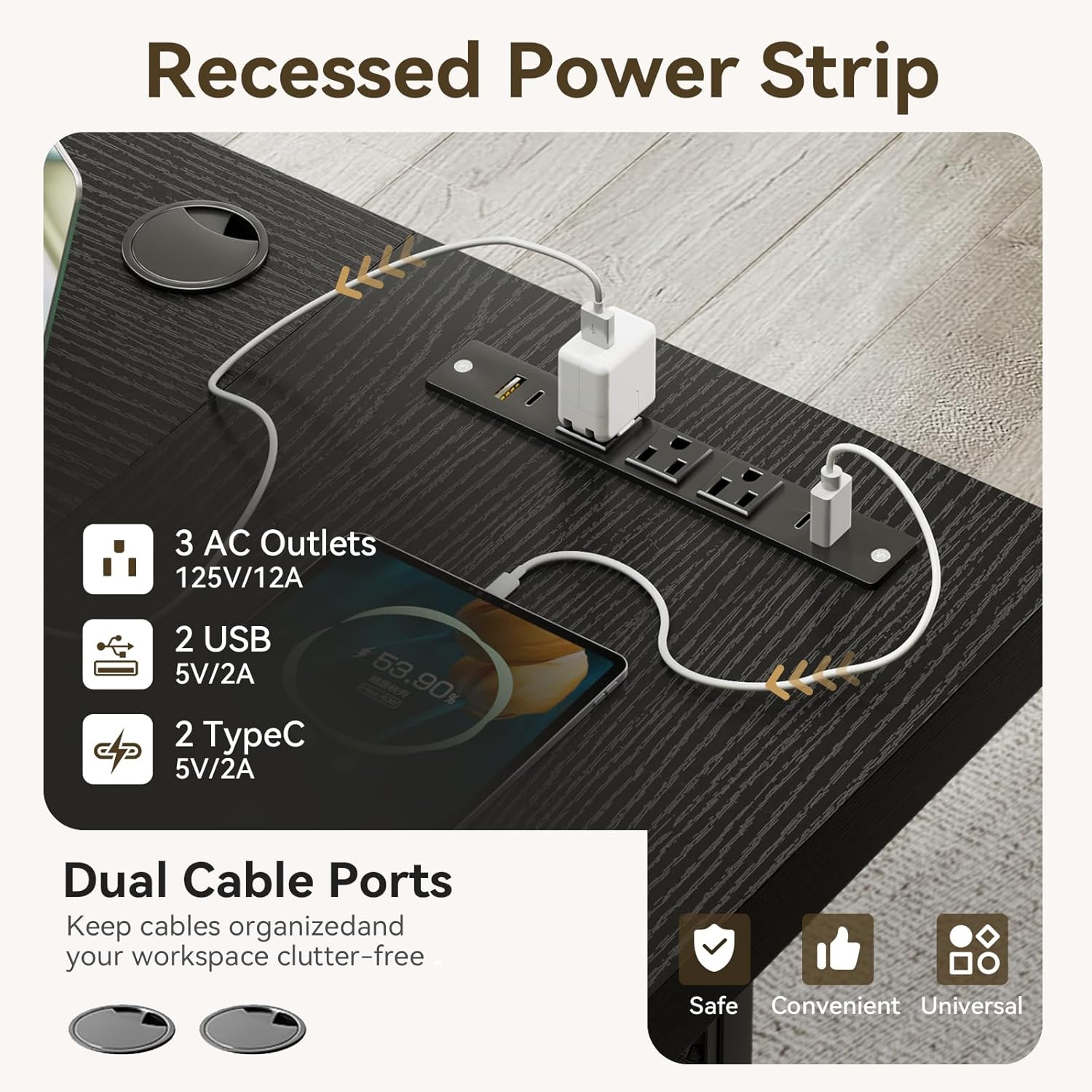 Coleshome 71 Inch Executive Desk with USB Ports, Computer Office Desk, Large Mordern Writing Table, Workstation Business Furniture for Home Office, Black