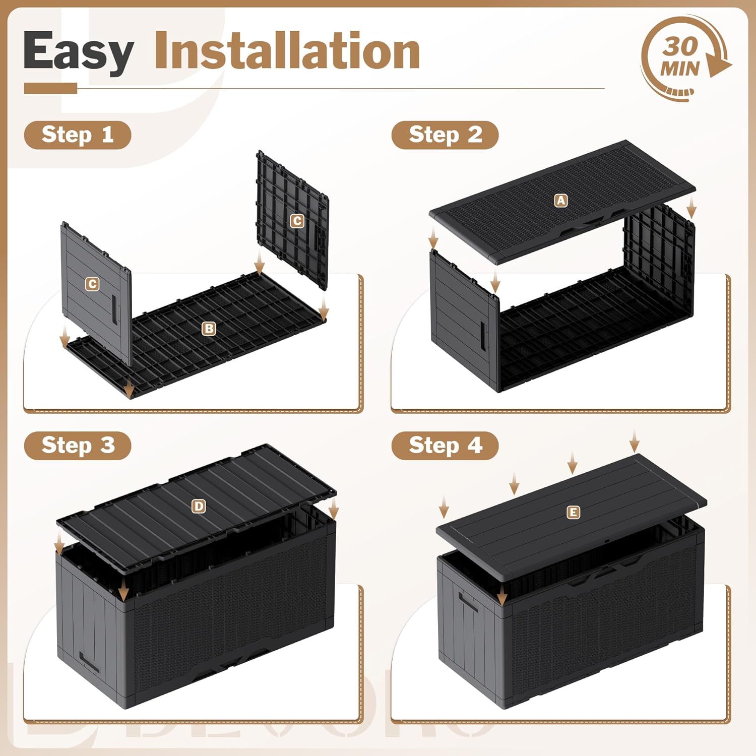 Devoko 100 Gallon Waterproof Large Resin Deck Box Indoor Outdoor Lockable Storage Container for Patio Furniture Cushions Garden Tools (100 Gallon, Black)