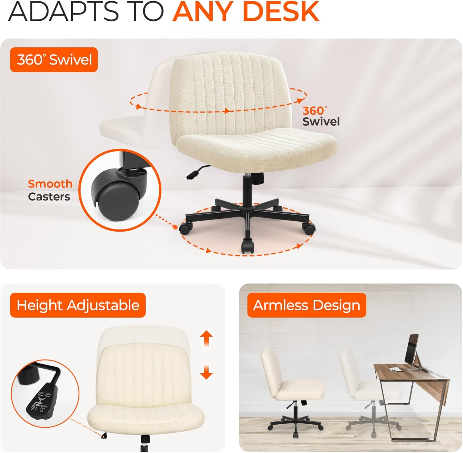 Orange Factory Criss Cross Chair Wheels Wide Cross Legged Office Desk Vanity Chair Comfy Fabric Armless Adjustable Swivel for Home Computer Task (Beige)